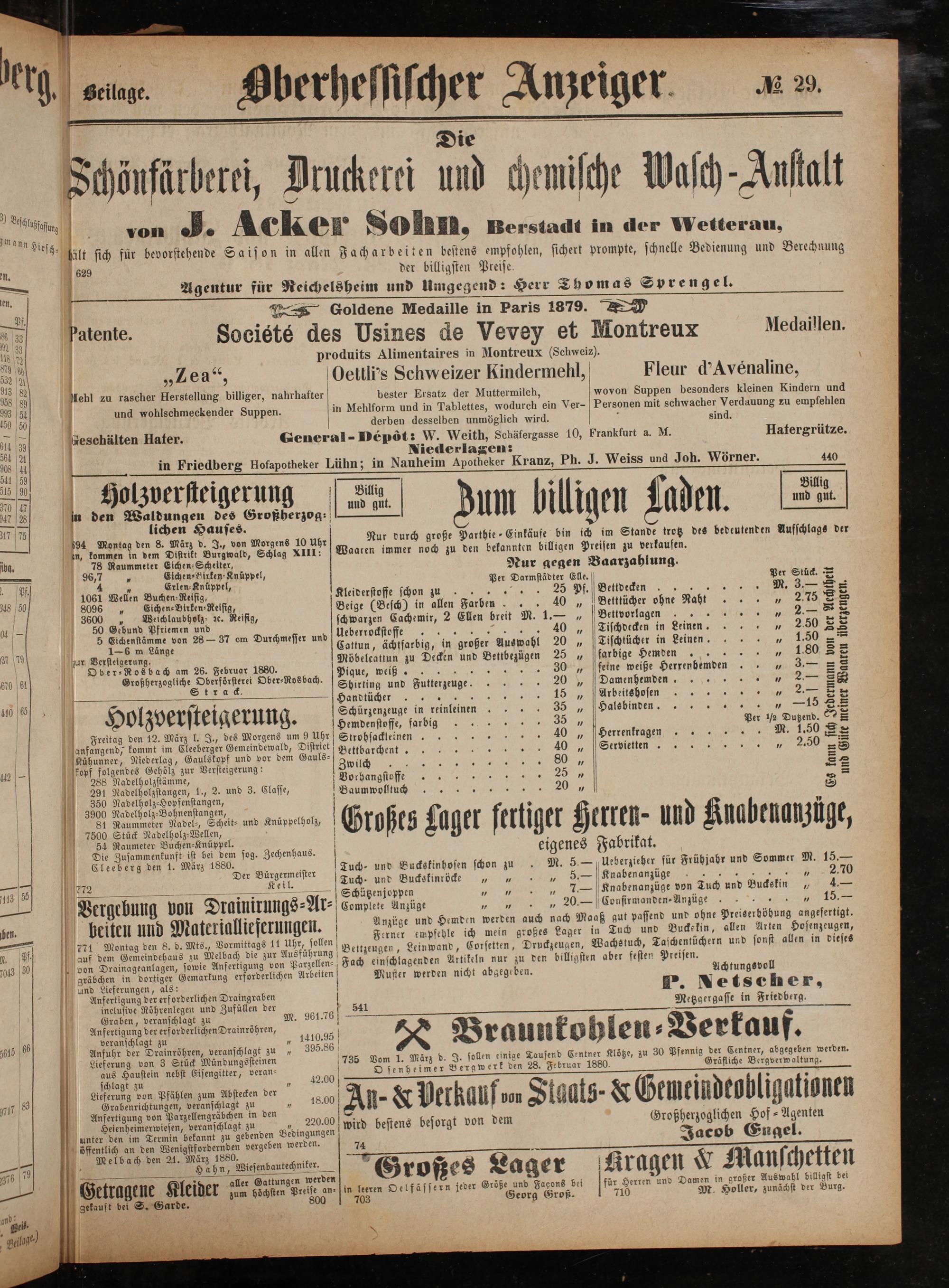 jederlagen: in Friedberg Hofapotheker Lüühn; in Nauheim Apotheker Kranz, Ph. J. Weiss und Joh. Wörner. 440 Hholzversteigerung ung 1 illi 1 ad f ae 5 und gut. und gut. * den Waldungen des 1 U U Je E* 2 lichen Hauses. VF