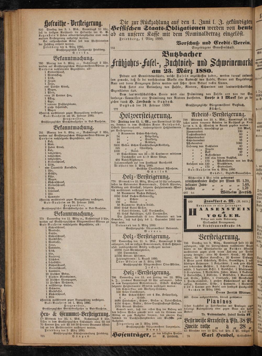 Butzbach den 24. Februar 1880. Großherzogliche Bürgermeisterei Butzbach.