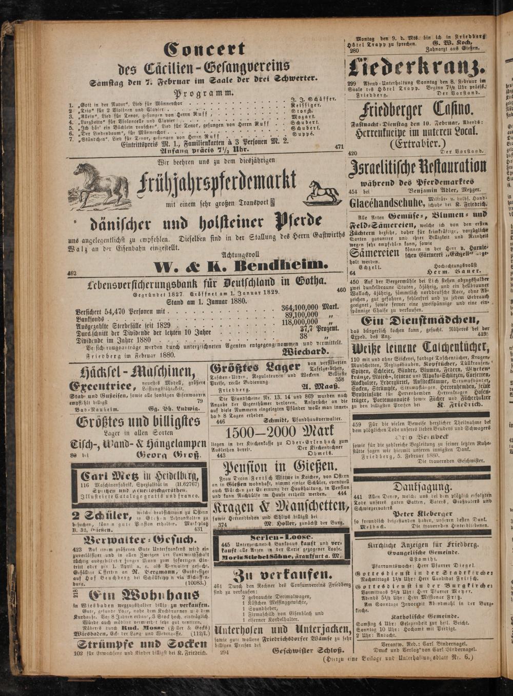 stätte sagen wir hiermit unseren innigsten Dank. Friedberg, 5. Februar 1880.
