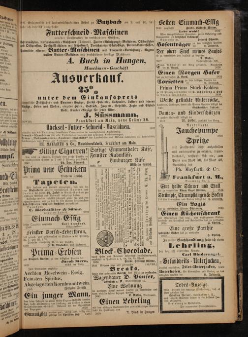 Prima Prima Stück-Kohlen zu 85 Pfennig per Centner bei S. Schönberg& Heß in Nieder-Wöllstadt. 2626
