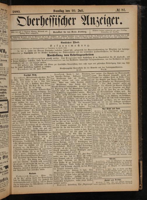 Jetreffend: Ausstellung von Lehrlingsarbeiten zu Oppenheim im Herbst 1880. In der 2. Hälfte des Monats September laufenden Jahres soll, gelegentlich der Generalversammlung der Mitglieder des Landesge— gerbevereins zu Oppenheim und der üblichen Ausstellung von Schülerarbeiten aus den inländischen Handwerkerschulen, der Versuch einer