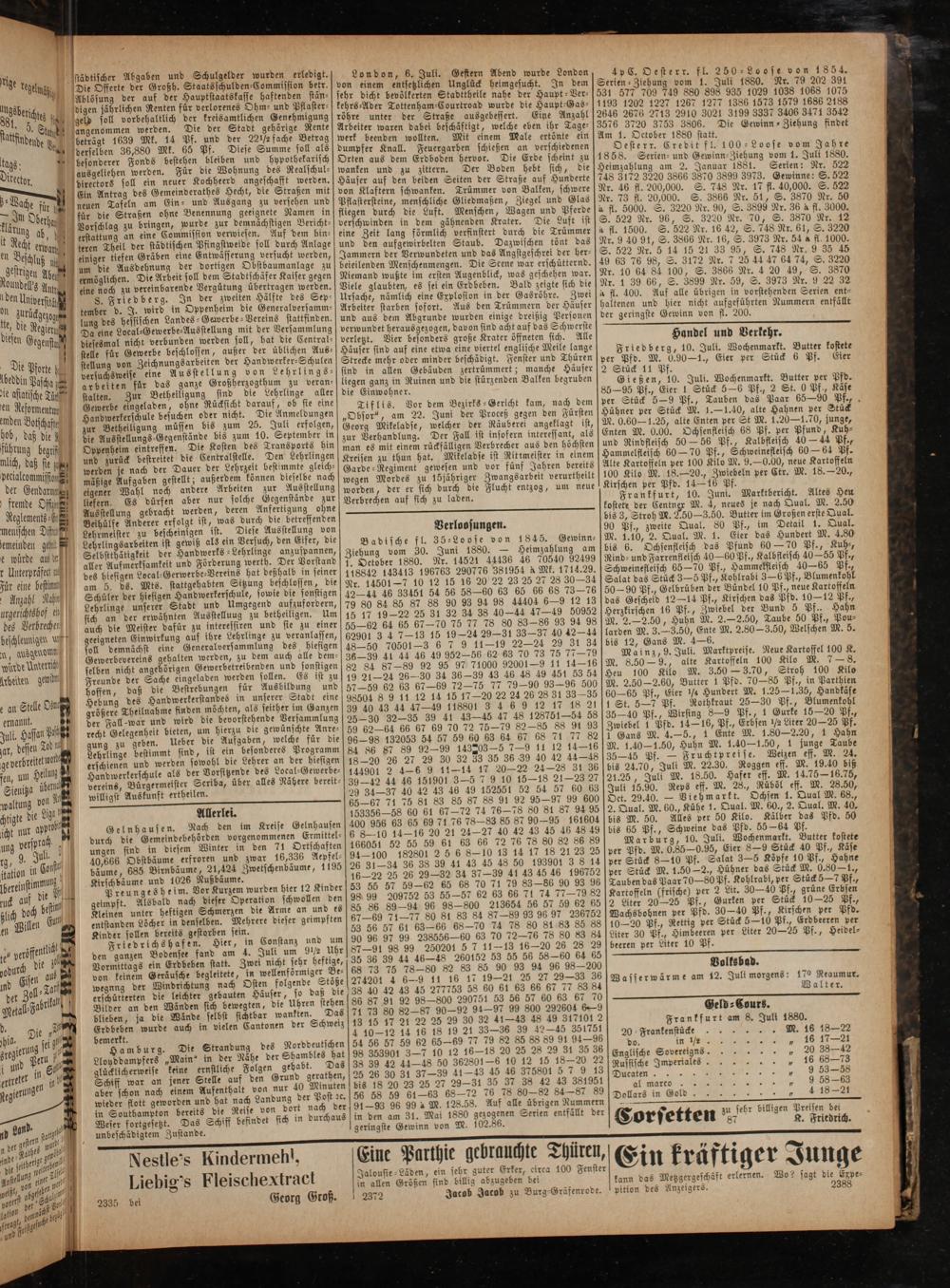 2 4p C. Oesterr. fl. 250⸗Loose von 1854. Serien⸗Ziehung vom 1. Juli 1880. Nr. 79 202 391 531 577 709 749 880 898 935 1029 1038 1068 1075 1193 1202 1227 1267 1277 1386 1573 1579 1686 2188 2646 2676 2713 2910 3021 3199 3337 3406 34713542 3576 3720 3753 3806. Die Gewinn-Ziehung findet Am 1. October 18800 statt.