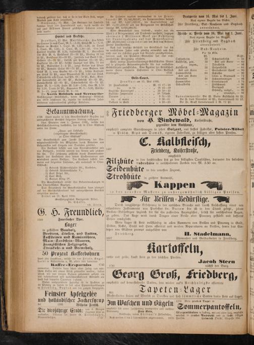 Friedberg. II. Stadelmann, 1557 Uhrmacher und Goldarbeiter in Friedberg. Kartoffeln, rothe und gelbe, kauft stets zu den höchsten Preisen.