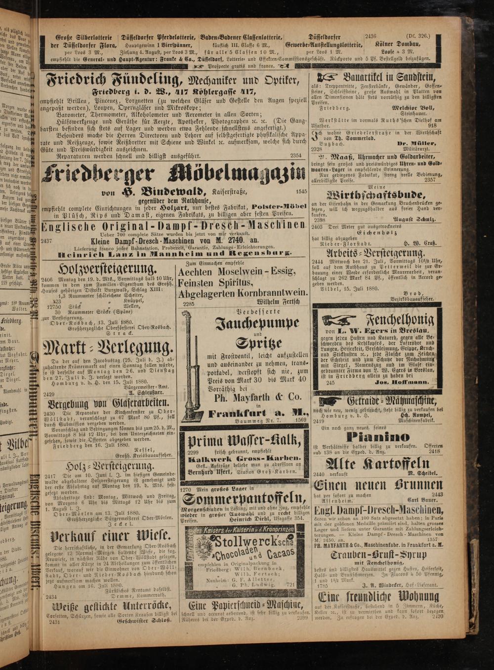 Homburg v. d. H. den 15. Juli 1880. Bürgermeister-Amt. 2429 A. Schleußner.