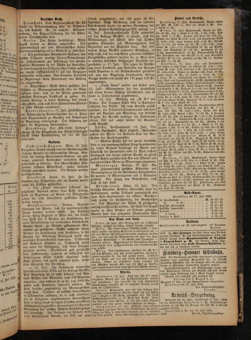 Friedberg, 17. Juli. Wochenmarkt. Butter kostete per Pfd. M. 0.90—1., Eier per Stück 6 Pf. Eier 2 Stück 11 Pf.