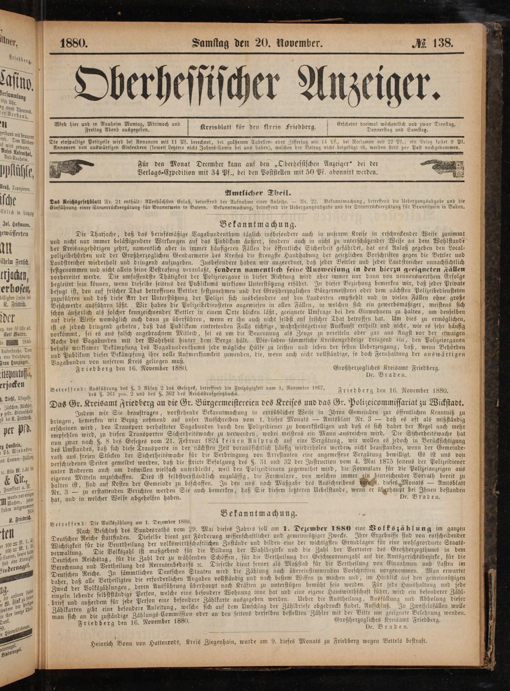 Friedberg den 16. November 1880. eee Friedberg.