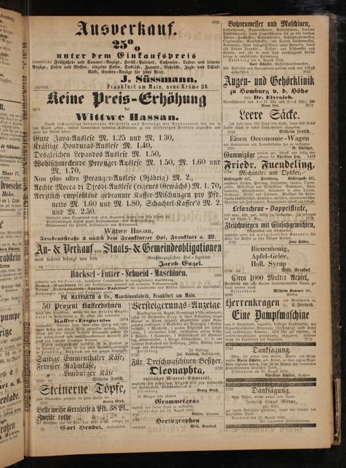 Wittwe Hassan, Friedensstraße 2 nächst dem Frankfurter Hof, Frankfurt a. M.