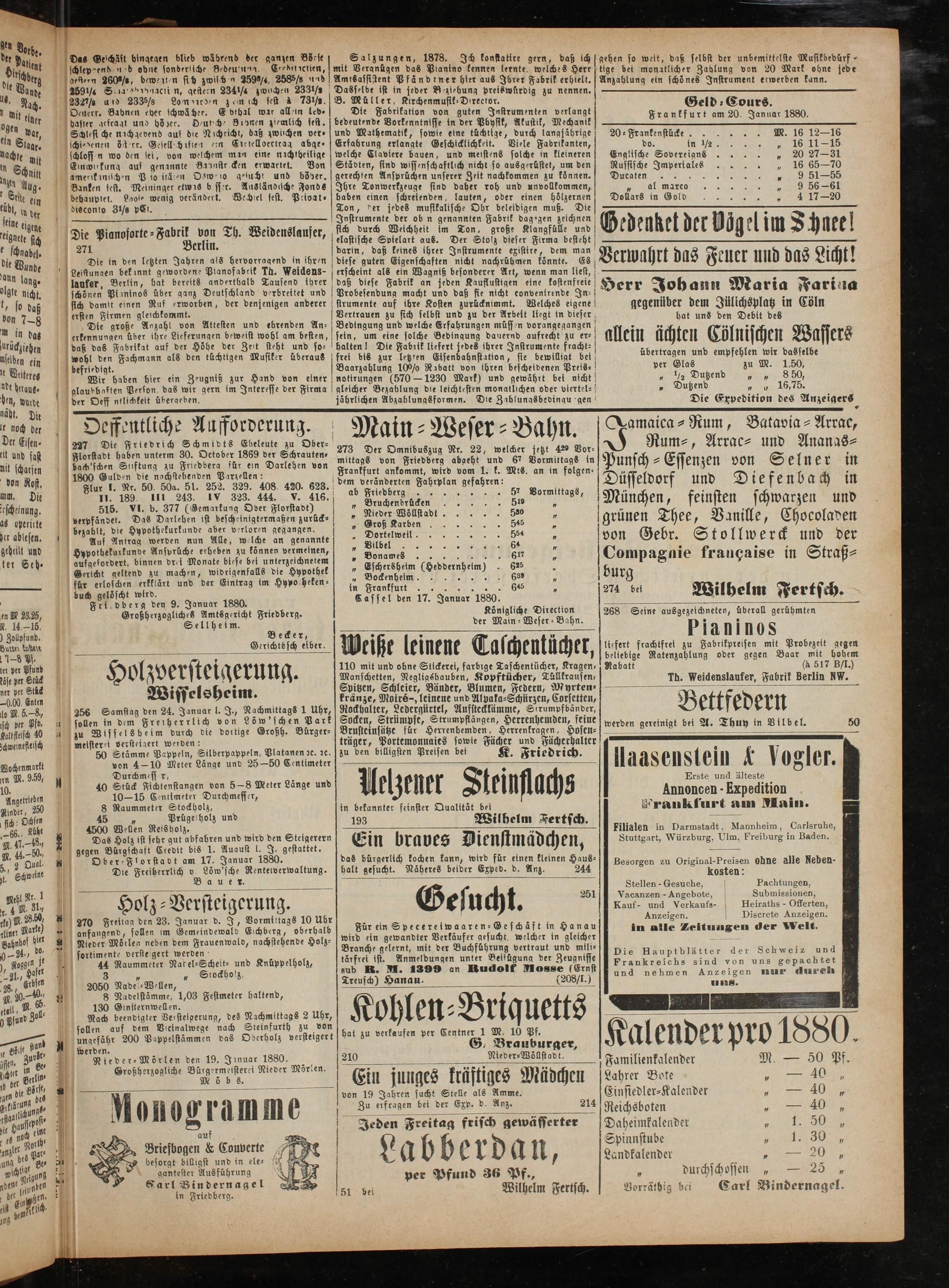 sassel den 17. Januar 1880. Königliche Direction der Main-Weser⸗Bahn.