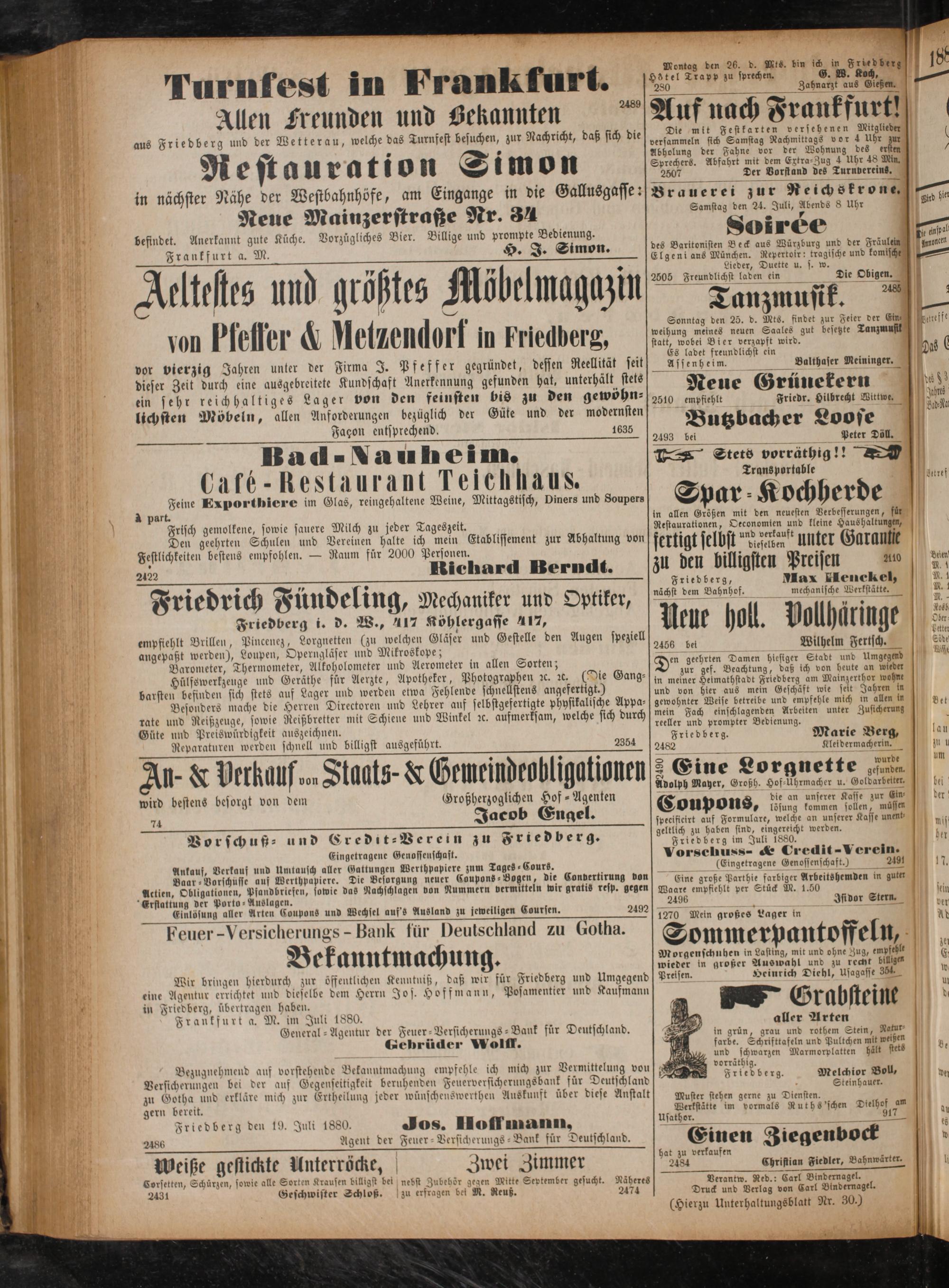 Friedberg den 19. Juli 1880. Jos. Hoffmann,