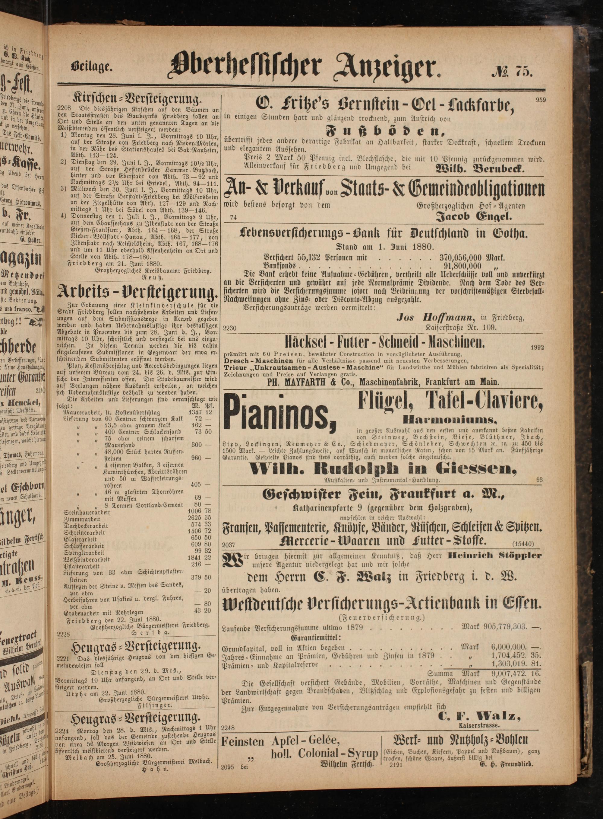 Friedberg den 22. Juni 1880. Großherzogliche Bürgermeisterei Friedberg. Seri b a.
