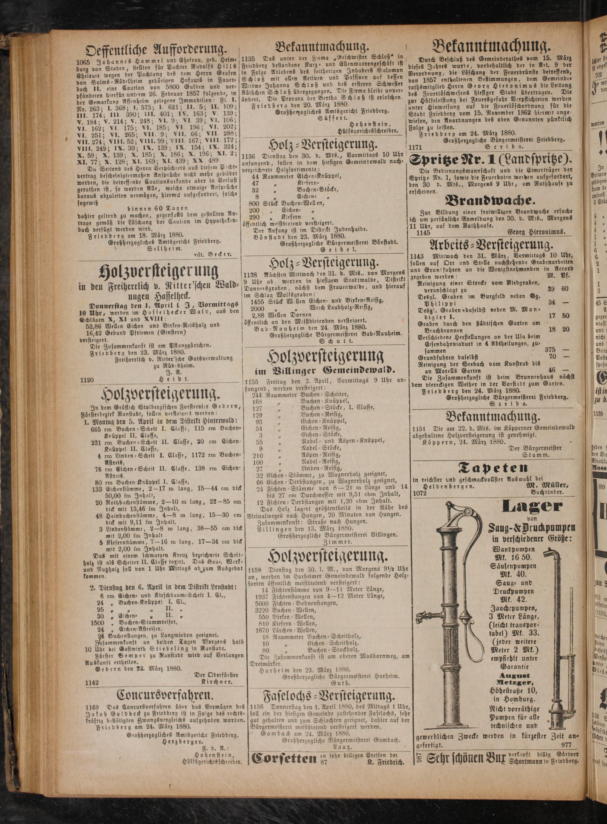 öffentlich meistbietend versteigert. Der Anfang ist im Distrikt Judenhaide. Bönstadt den 23. März 1880.