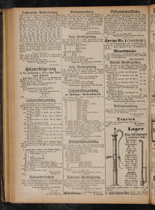 1151 Die am 22. d. Mts. im Köpperner Gemeindewald abgehaltene Holzversteigerung ist genehmigt. Köppern, 24. März 1880. Der Bürgermeister Stamm.
