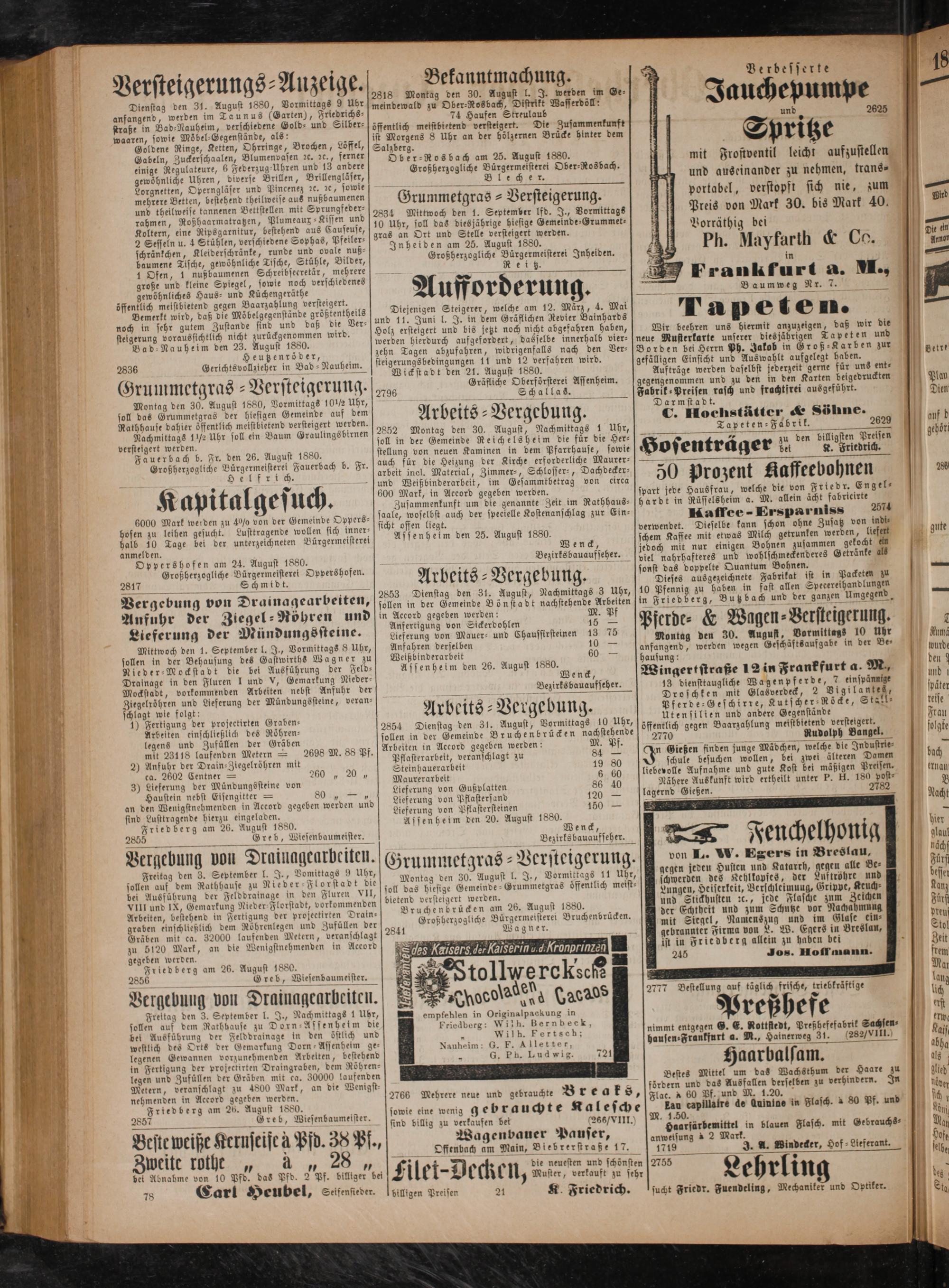 Friedberg am 26. August 1880. 2855 Greb, Wiesenbaumeister.