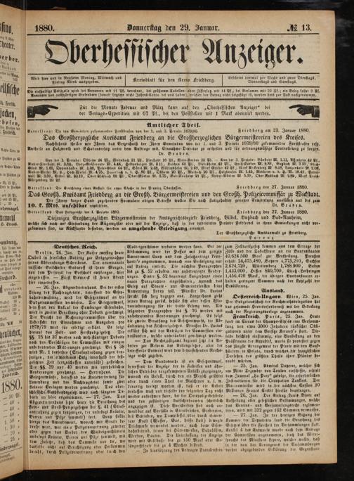 Für die Monate Februar und März kann auf den„Oberhessischen Anzeiger“ bei der Verlags-Expedition mit 67 Pf., bei den Poststellen mit 1 Mark abonnitt werden.