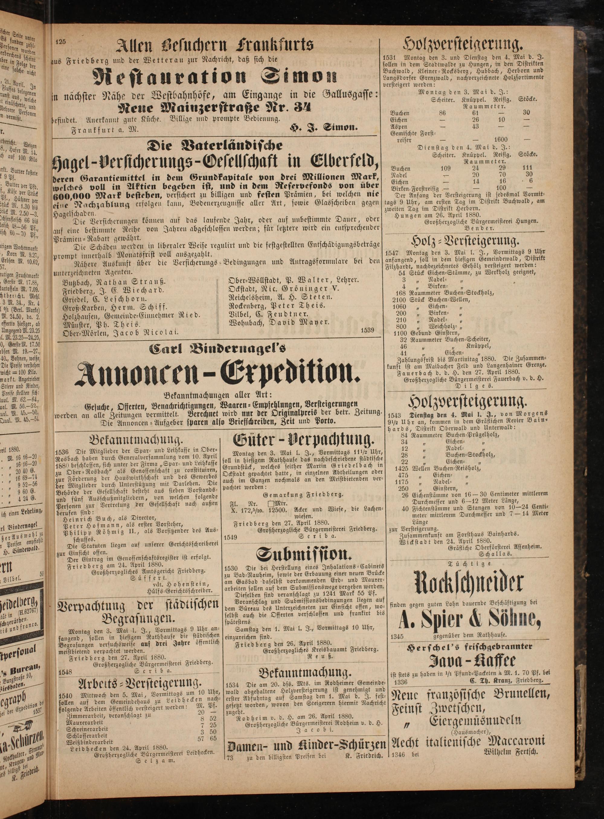 Butzbach, Nathan Strauß. Friedberg, J. E. Wiechard. Griedel, C. Leschhorn. Groß⸗Karben, Herm. Schiff.