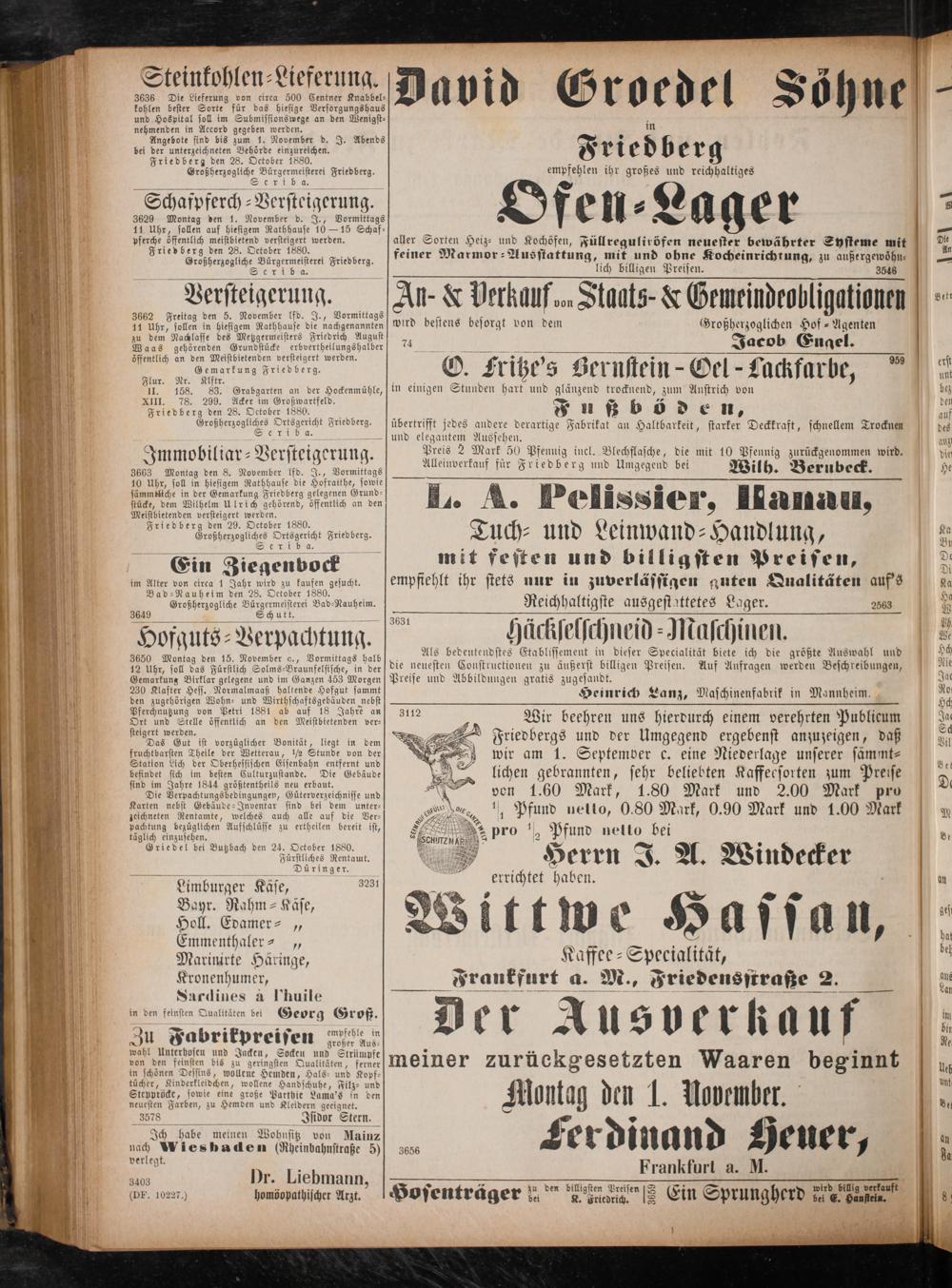 Friedberg den 28. October 1880.