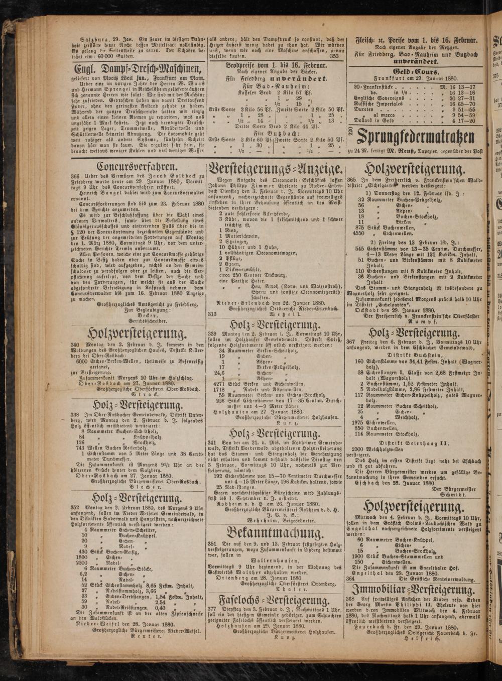 Nach eigener Angabe der Metzger. Für Friedberg, Bad- Nauheim und Butzbach unverändert. Geld- Cours. Frankfurt am 29. Jan ar 1880.