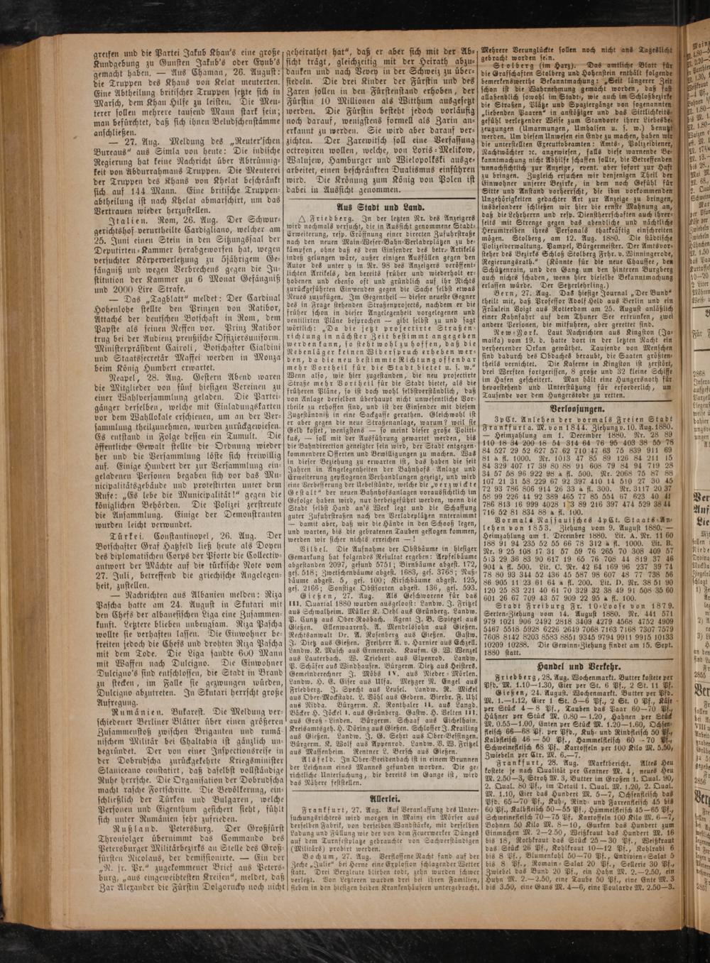 Stadt Freiburg Fr. 10⸗Loose von 1879. Serten⸗Ziehung vom 14. August 1880. Nr. 441 571 979 1021 906 2492 2818 3409 4279 4568 4752 4909 5467 5518 5928 6226 2649 7068 7163 7168 7307 7579 7608 8142 8203 8583 8851 9345 9794 9911 9915 10133 10209 10288. Die Gewinn⸗Ziehung findet am 15. Sept. 1880 statt.