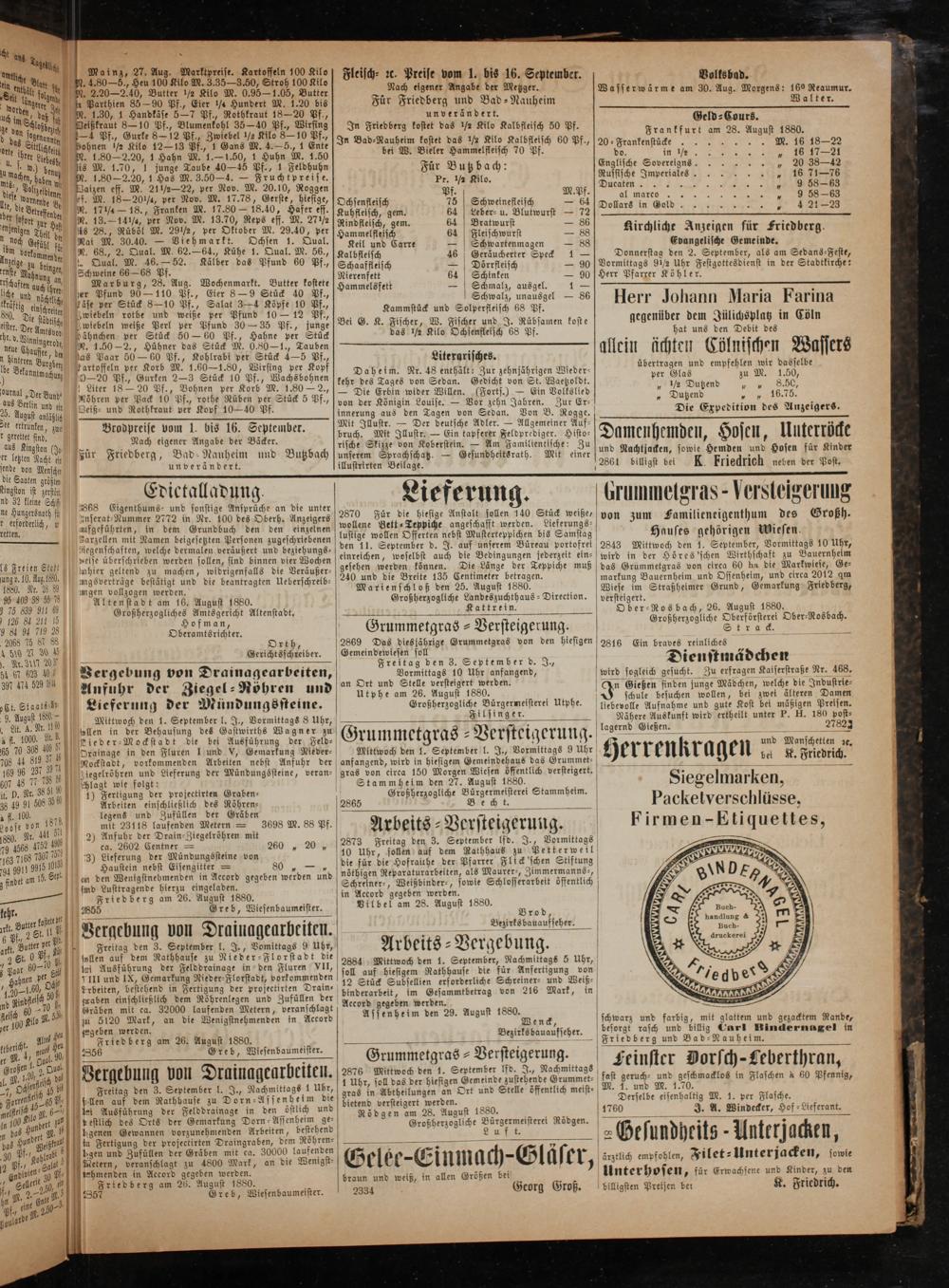 un den Wenigstnehmenden in Accord gegeben werden und md Lusttragende hierzu eingeladen. Friedberg am 26. August 1880.
