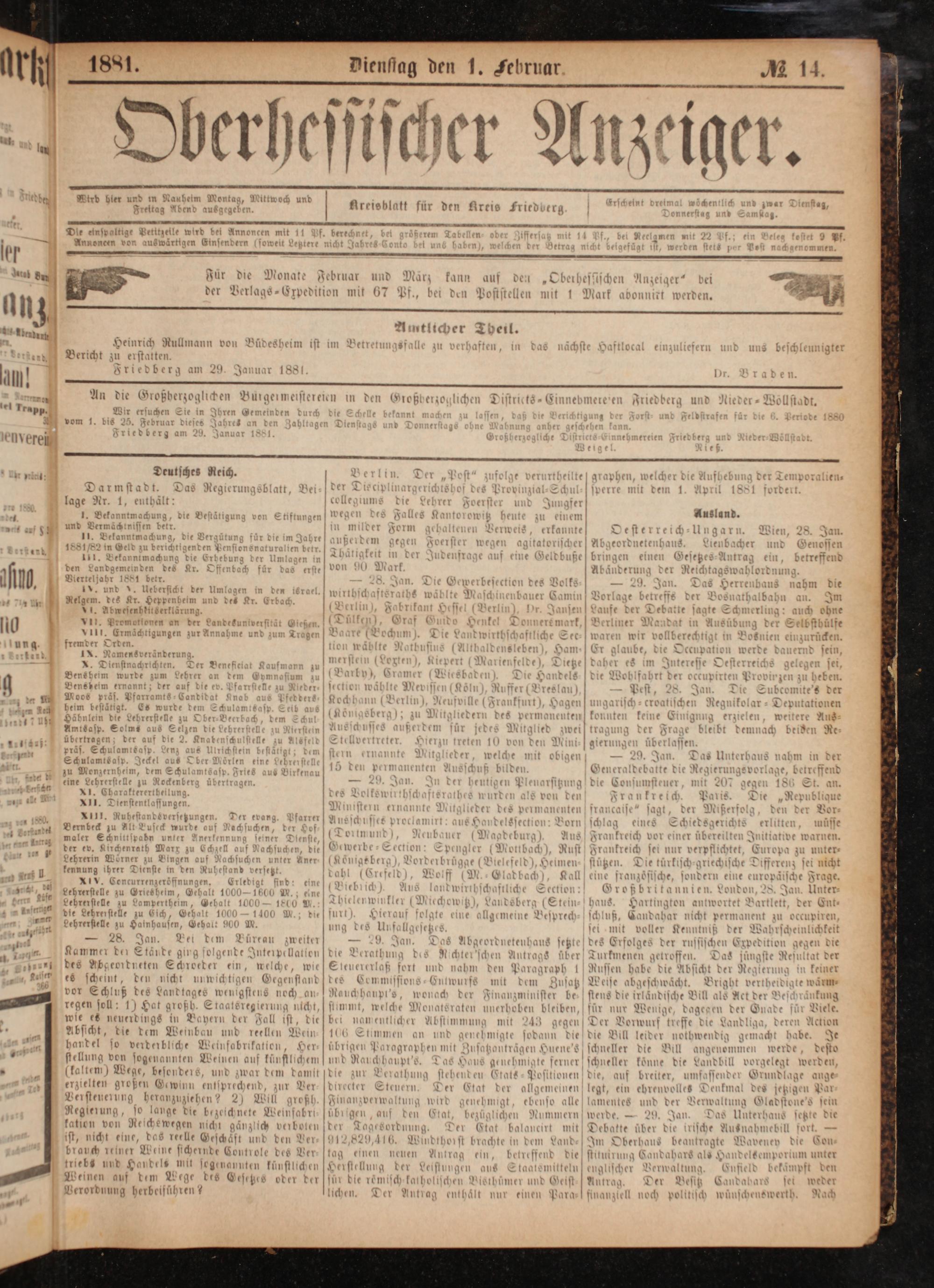 1881. Dienssag den 1. Februar. M 14.