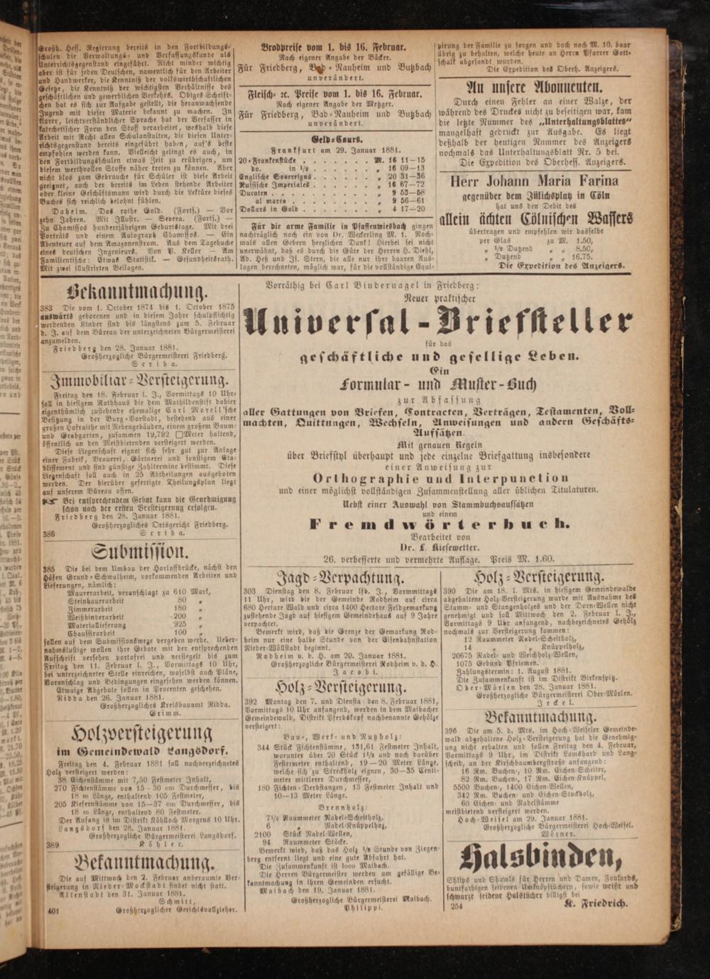 Bci entsprechendem Gebot kann die Genehmigung f schon nach der ersten Versteigerung erfolgen. Uebst einer Auswahl von Stammbuchsaussaätzen 4 Friedberg den 28. ar 1881. und einem*