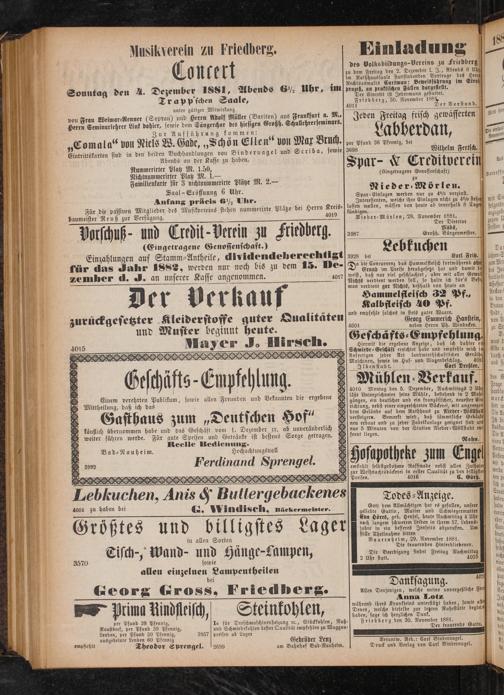 Anna Lotz während ihres Krankseins unterstützt haben, sowie alli Denen, welche dieselbe zur letzten Ruhestätte beglelst haben, sage ich herzlichen Dank. Friedberg den 30. November 1881. ——— Verantw. Red.: Carl Bindernagel. Druck und Verlag von Carl Bindernagel.