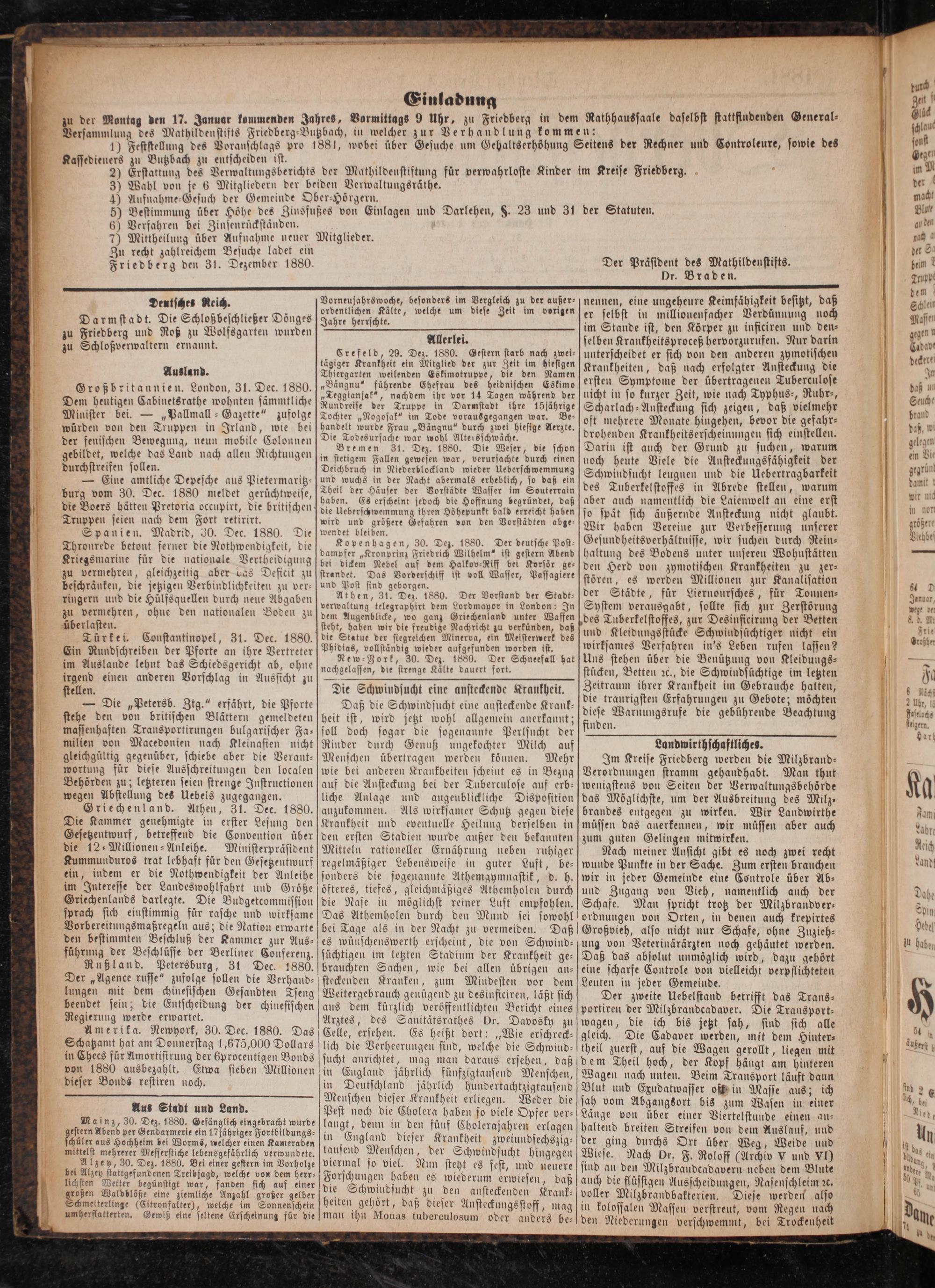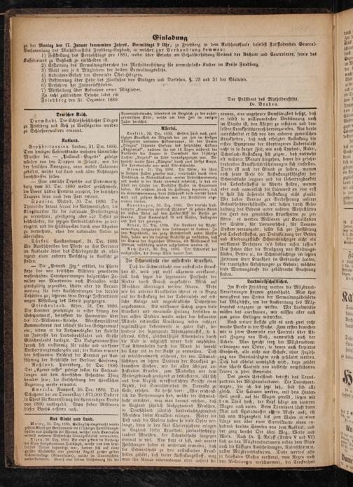 Zu recht zahlreichem Besuche ladet ein Friedberg den 31. Dezember 1880.