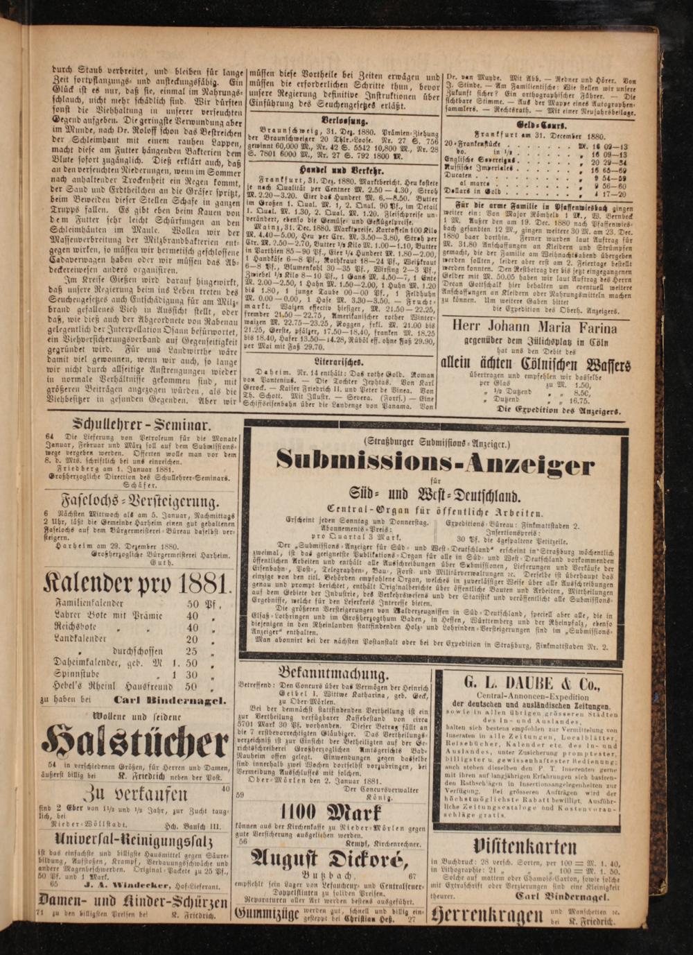 60 1* 0* G. L. DAUBE& Co., Centrab-Annoncen-Expedition der deutschen und ausländischen Zeitungen S Wie in Allen übrige össeren Städten des In- und Auslandes halten sich bestens empfohlen r V. ittelung von Inseraten in alle Zeitung Loe tter, Relsebüeher, Kalender ete des In- und Kus landes, unter Zusicherung promptester, billigster u. gevissenhaftester! edienung; meh stehen dieselben den p T. I renten gerne mit ihren auf langjährigen Erfahrungen sich basiten- den Rathschlägen in Iusertfot ingelegenheiten zur Verfüg, ng Nei grössetet Aufträgen wird der höchstmögliehste Rabatt bewilltet Ausführ- liche Zeltungsesta! aud Kosten voran
