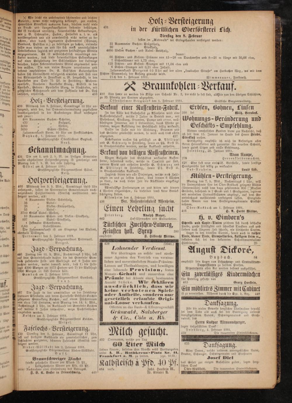 sagen tiefgefüblten Dank Friedberg, 4. Februar 1881