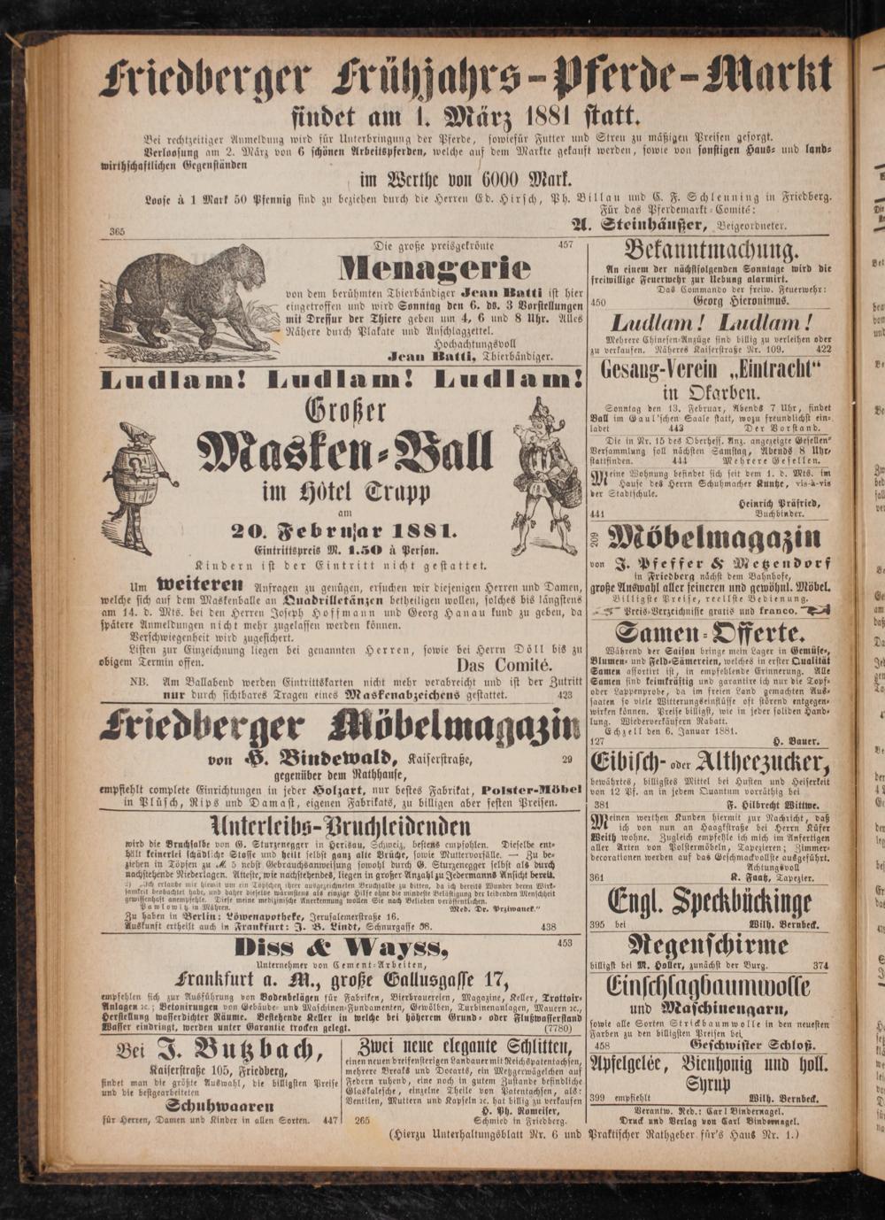 illau und C. F. Schleuning in Friedberg. Für das Pferdemarkt-Comité: