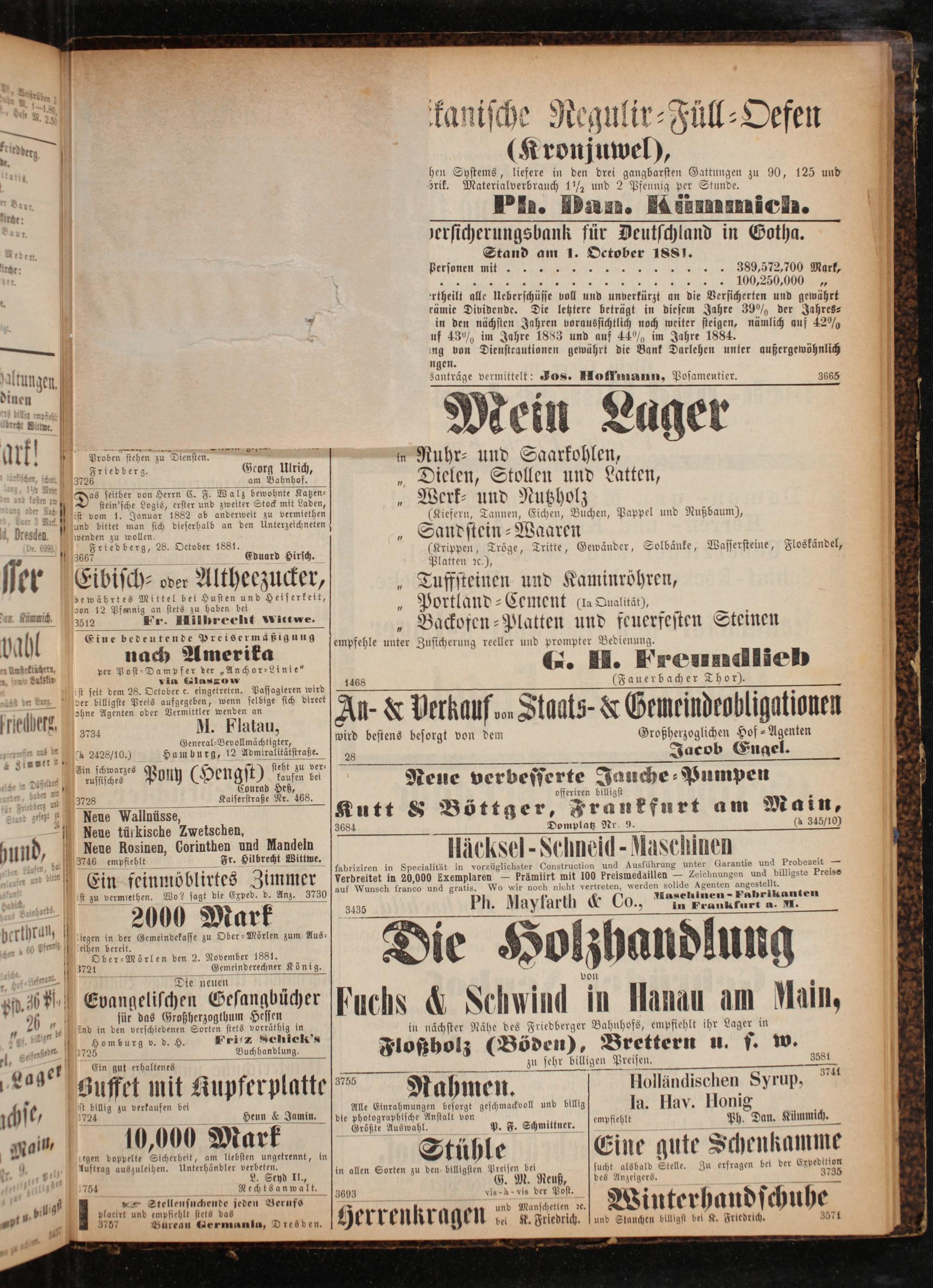 5 5 Proben stehen zu Diensten.* 4 Friedberg. Georg Ulrich, Sen.] 3726 am Babnhof.