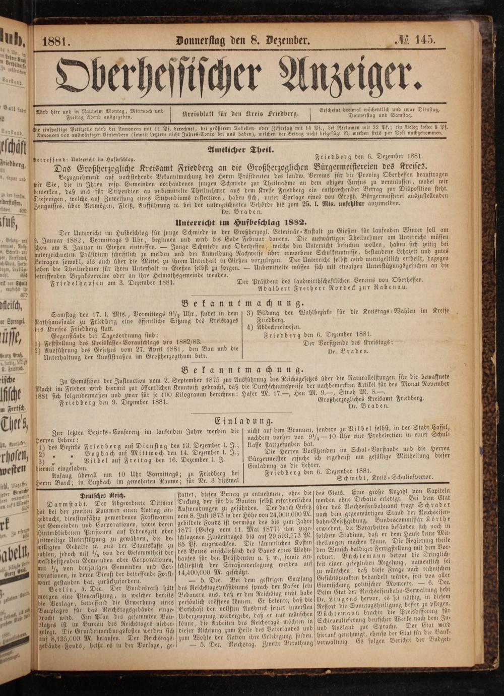 Friedberg den 9. Dezember 1881.
