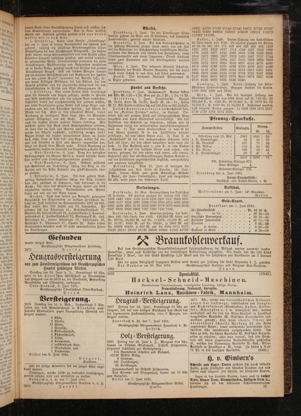 Gesammt⸗Einleger 578. Friedberg den 4. Juni 1881.