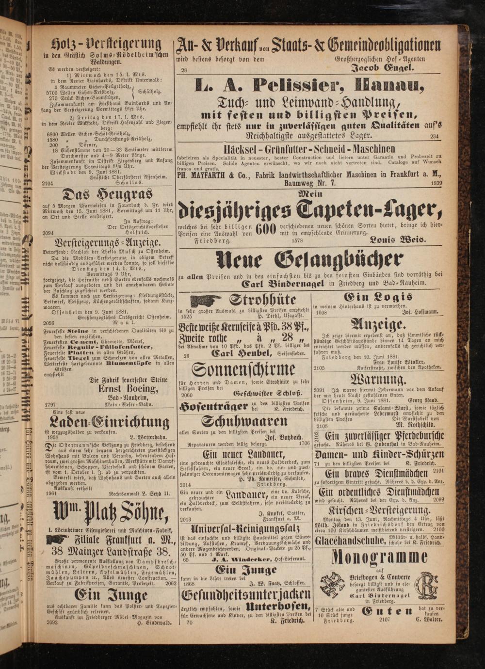 2105 2 Kaiserstraße, zwischen den Apotheken. W arnung. 2091 Ich warne hiermit Jedermann vor dem Ankauf