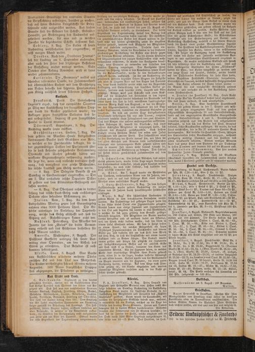 Coblenz, 8. Aug. Der Kaiser ist heute Nachmittag wohlbehalten hier eingetroffen; er reist morgen Abend weiter.