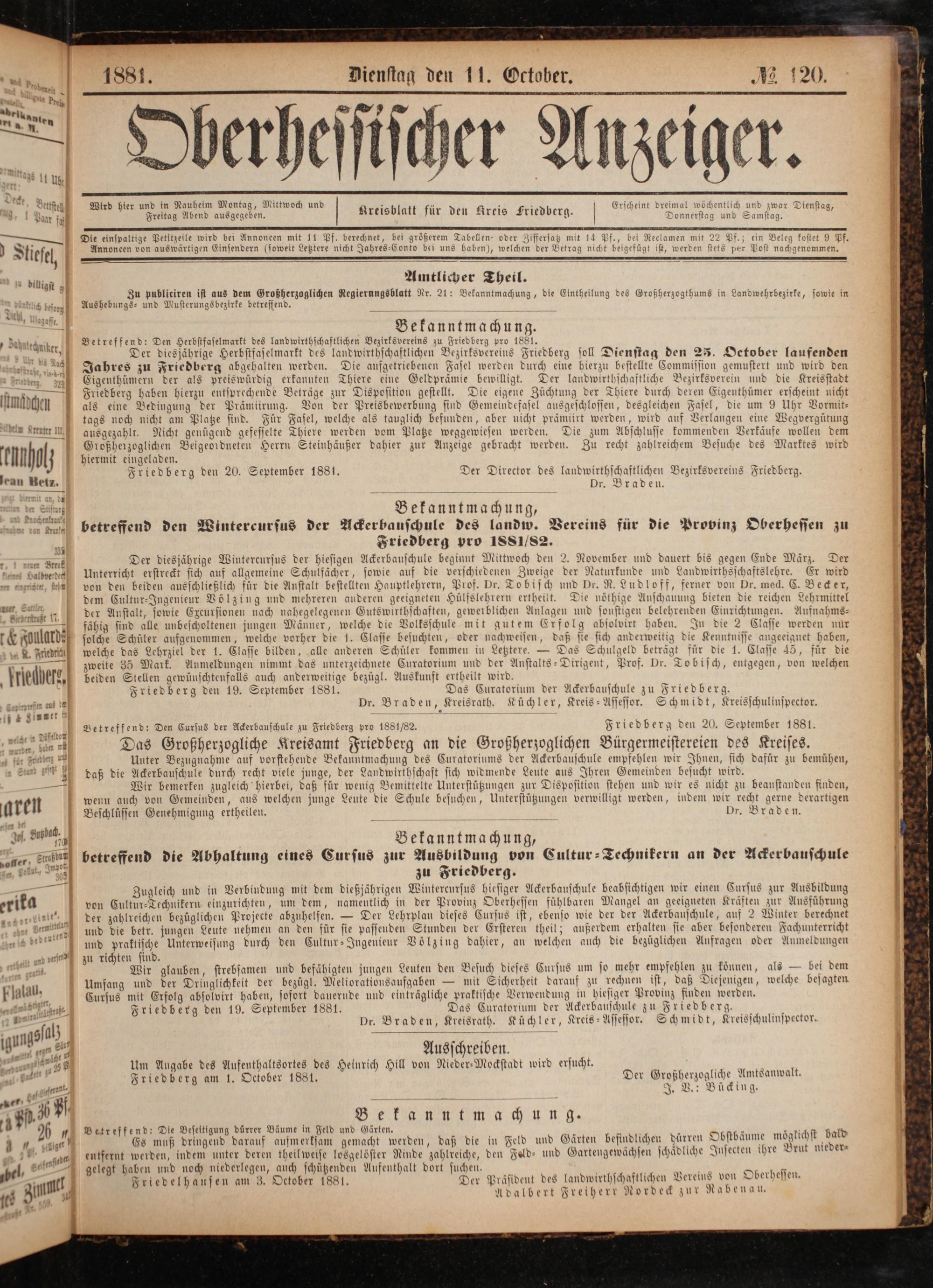Friedberg den 20. September 1881. Der Director des landwirthschaftlichen Bezirksvereins Friedberg.