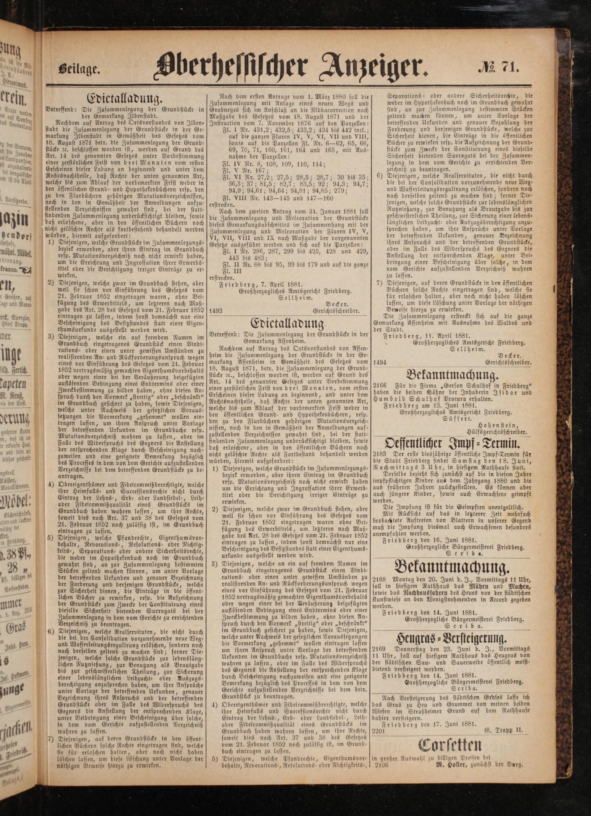Friedberg den 17. Juni 1881. 2201 G