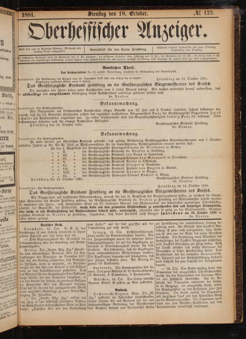 Großherzogliches Kreisamt Friedberg. Dr. Braden.