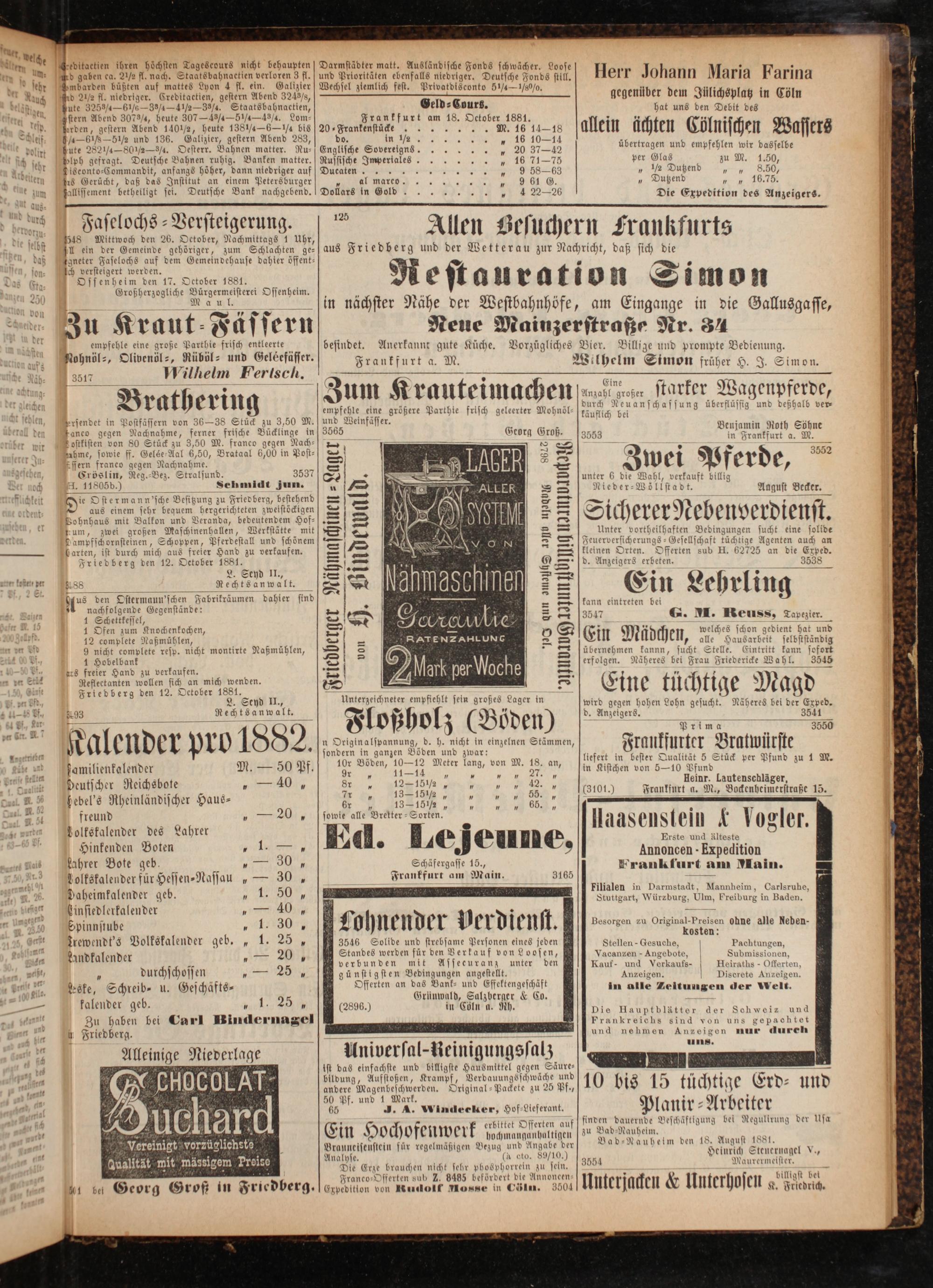 Haasenstein& Fogler. Erste und älteste Annoncen- Expedition Frankfurt am Main.