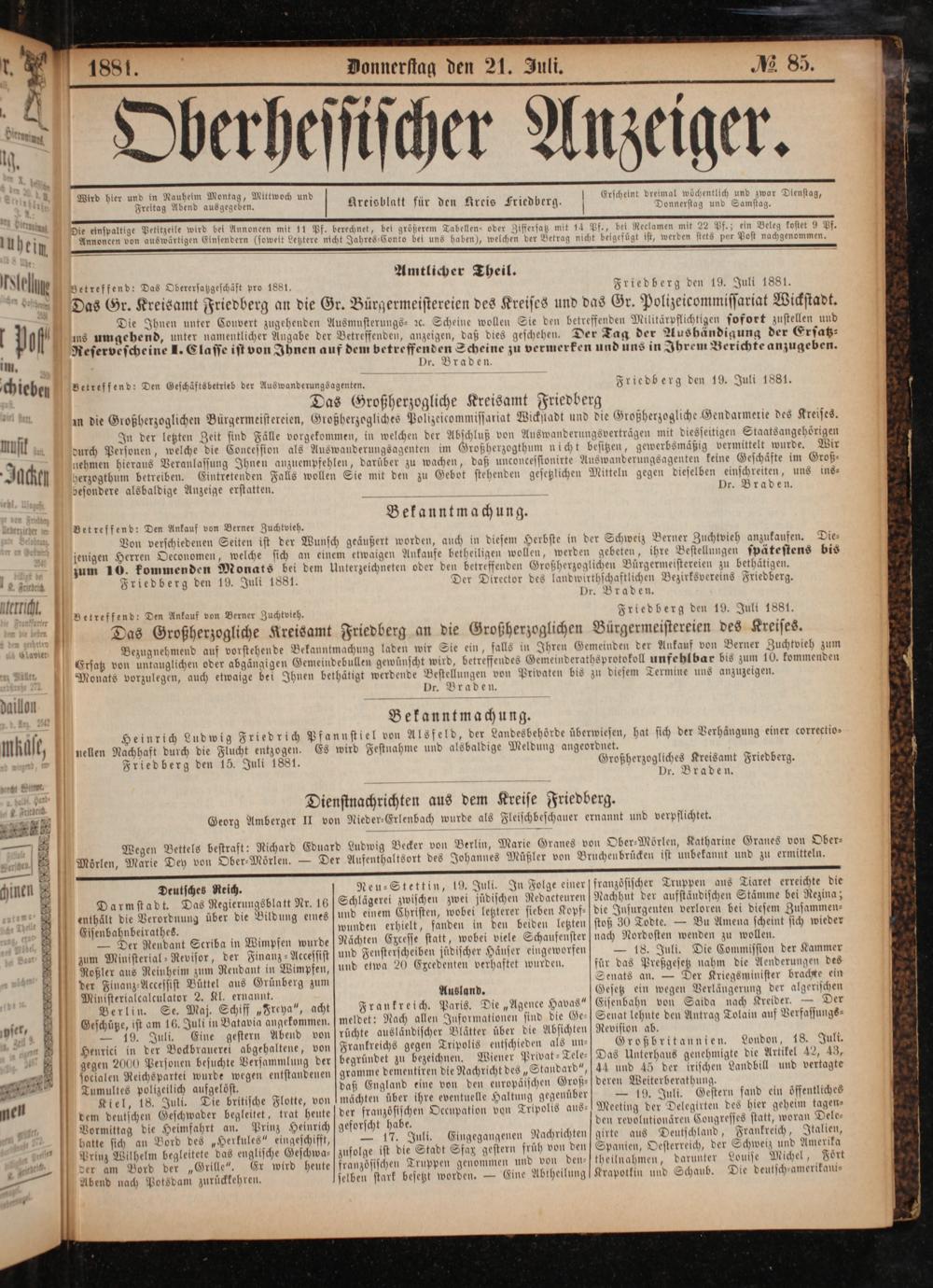 Friedberg den 19. Juli 1881.