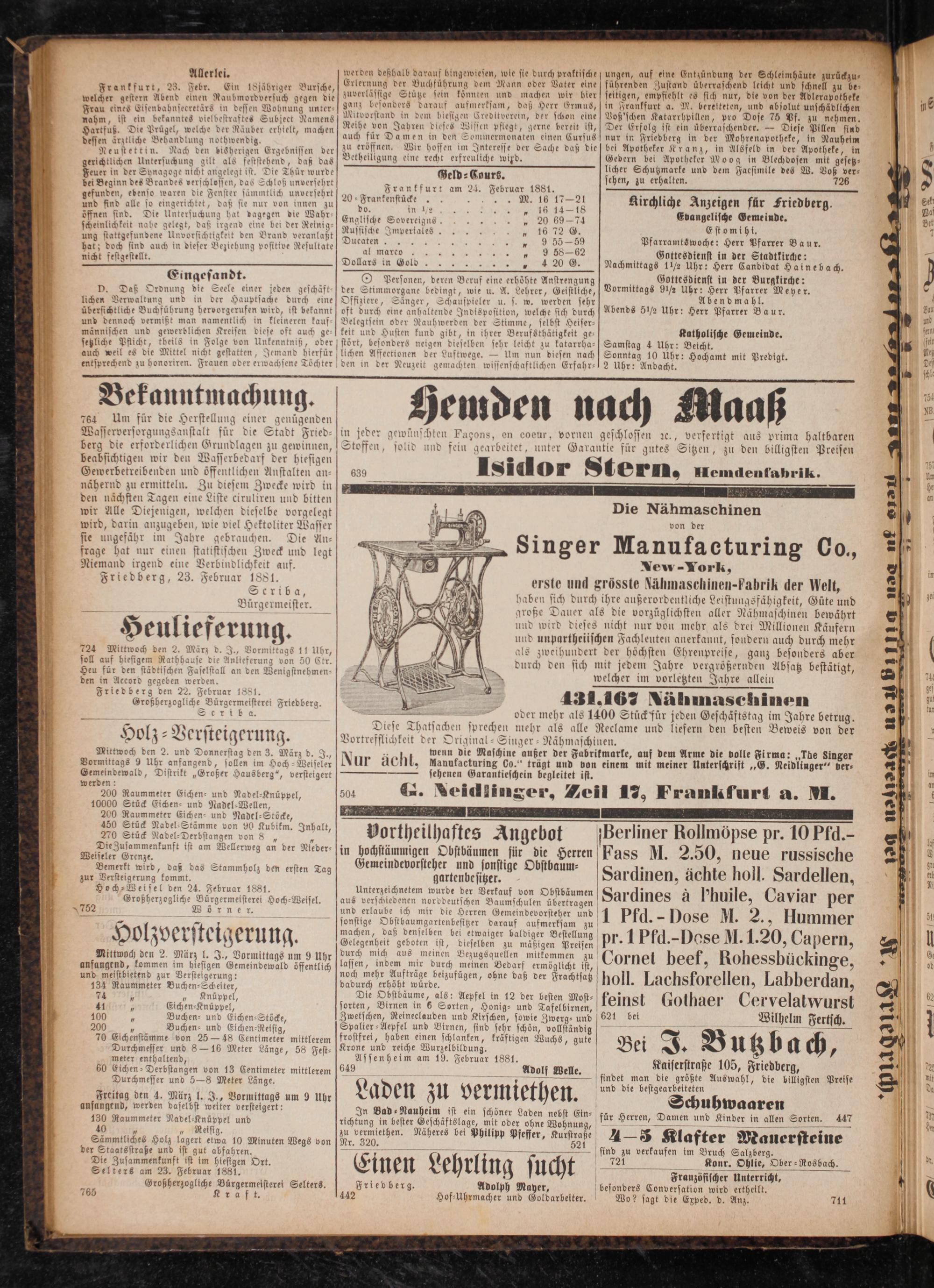 Kirchliche Anzeigen für Friedberg.