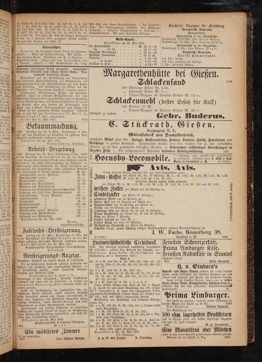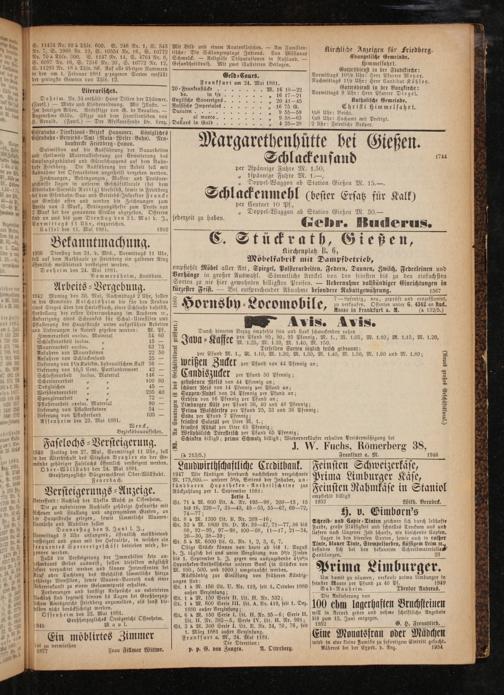 1. März 1881 außer Verzinsung. Frankfurt a. M., 24. Mai 1181.