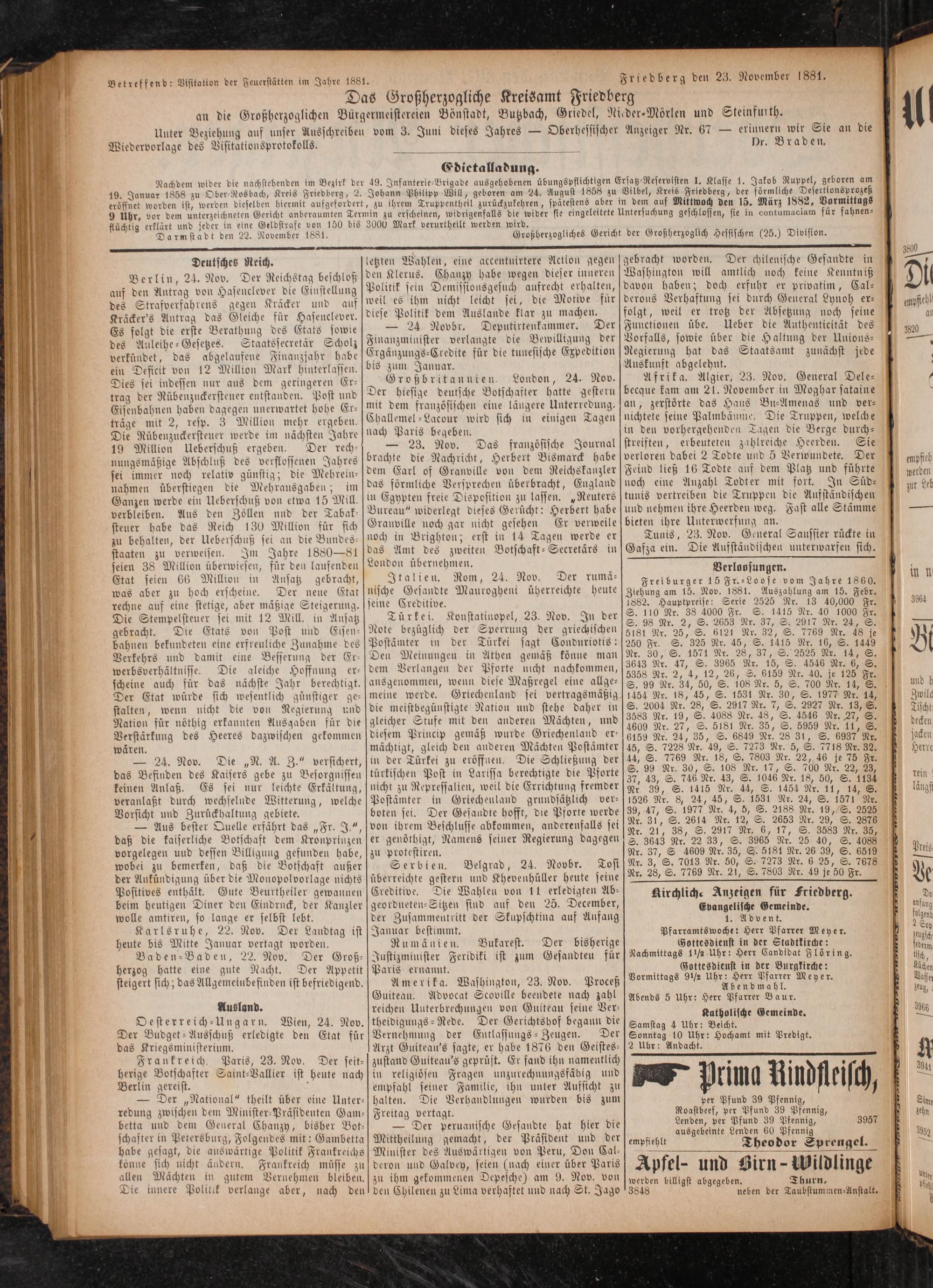 Friedberg den 23. November 1881.