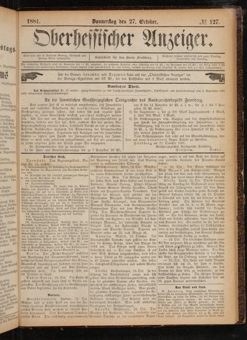 geordneten Annoncen von auswärtigen Einsendern(soweit Letztere nicht Jahres-Conto bei uns e welchen der V etrag nicht beigefügt ist, werden stets per Post nachgenommen. 8 Für die Monate November und Dezember 75 auf den„Oberhessischen Anzeiger“ bei * der Verlags-Expedition mit 67 Pf, bei den Poststellen mit 1 Mark abonnirt werden. blagenen