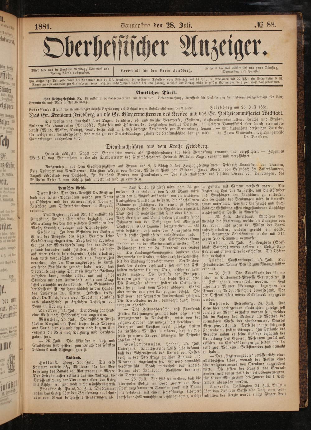 Friedberg am 25. Juli 1881.