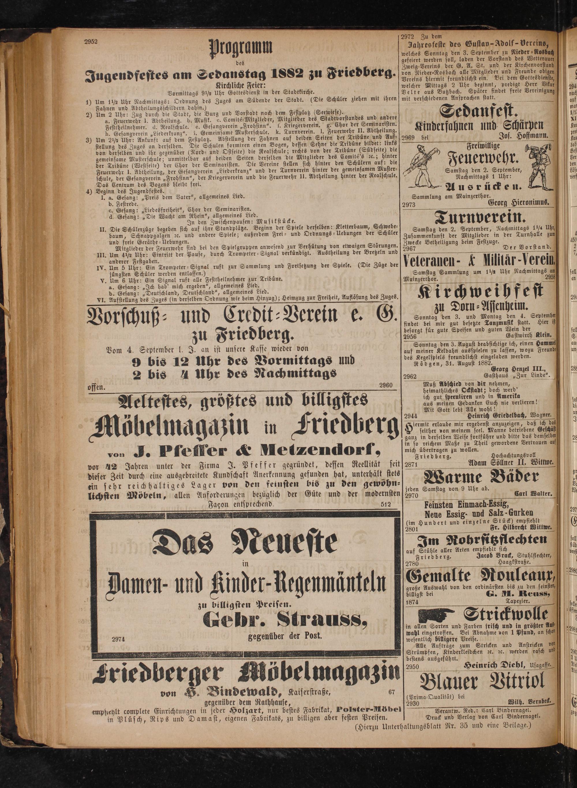 Jugendfestes am Sedaustag 1882 zu Friedberg.