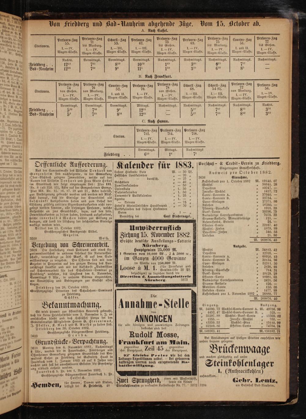 u Friedberg und Zad-Mauheim abgehende Züge. Vom 15. October ab.