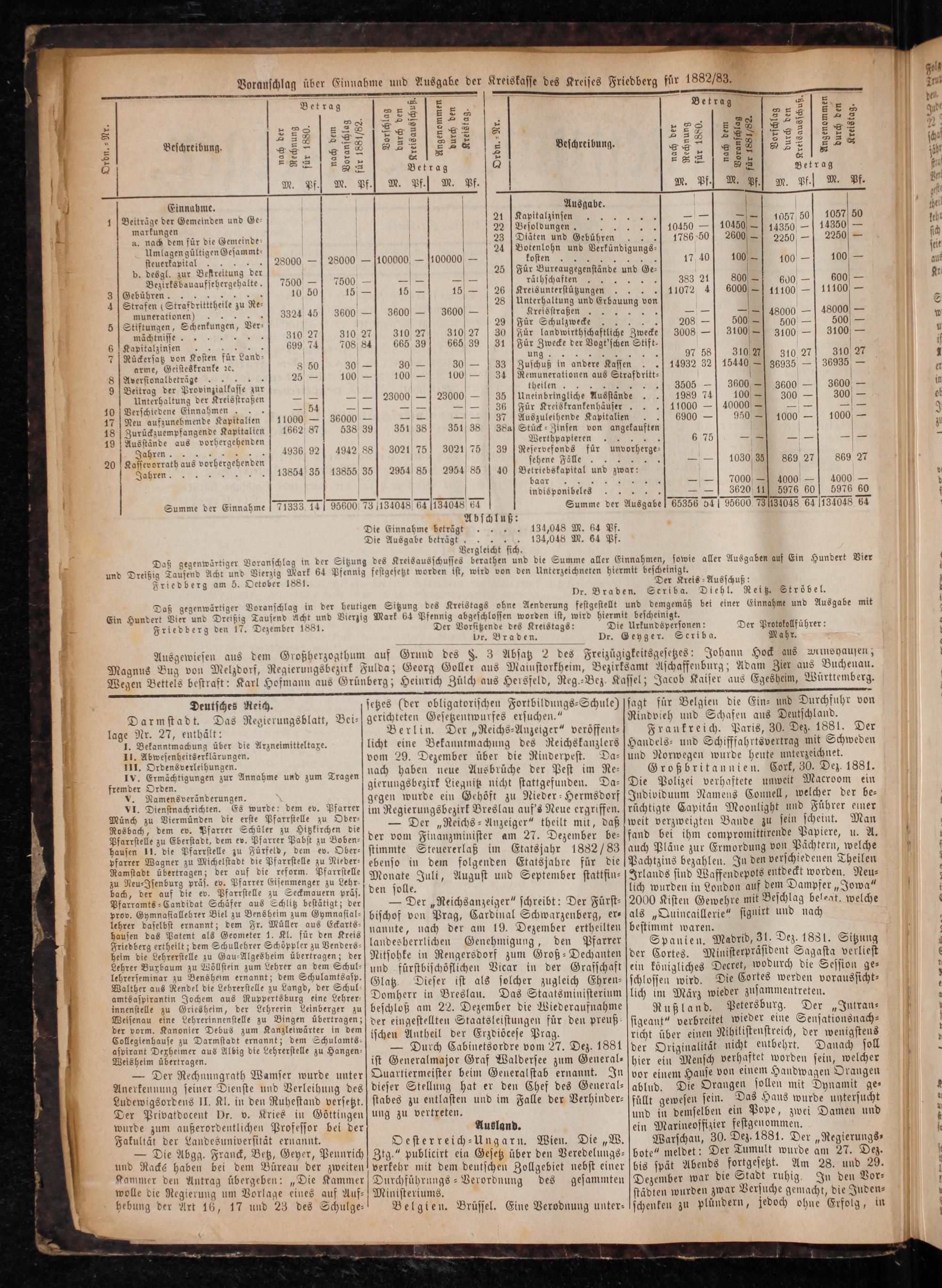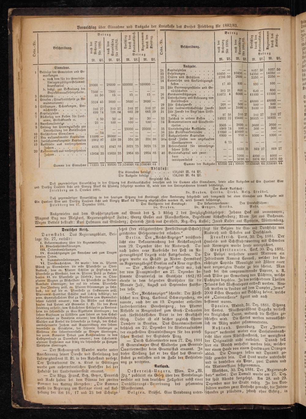 Daß gegenwärtiger Ein Hundert Vier und Dreißig Tausend Friedberg den 17. Dezember 1881.