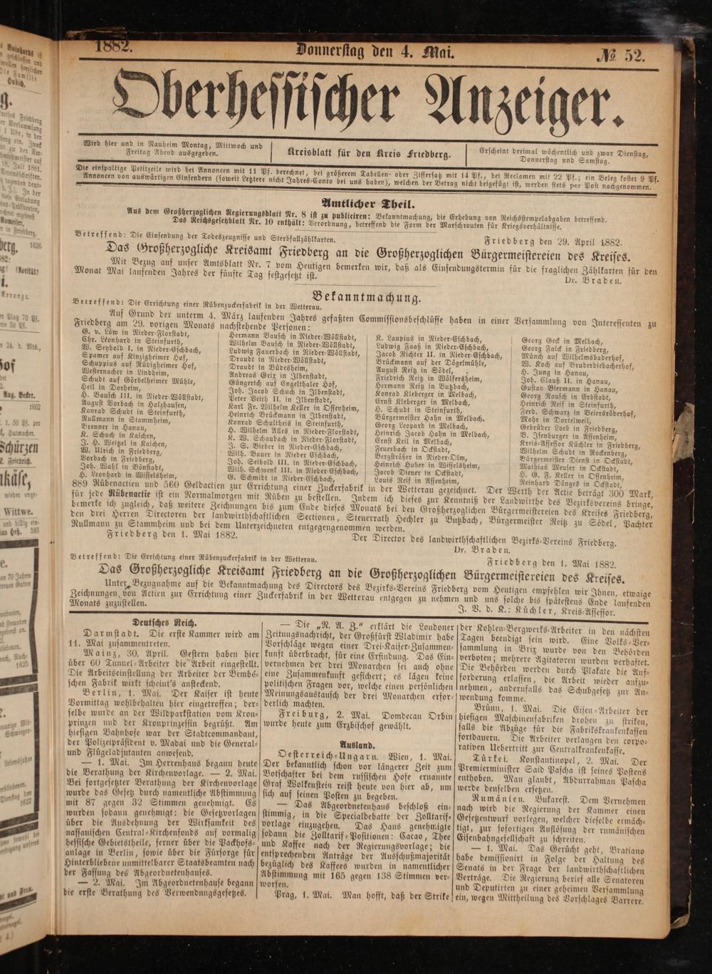 Friedberg den 1. Mai 1882.