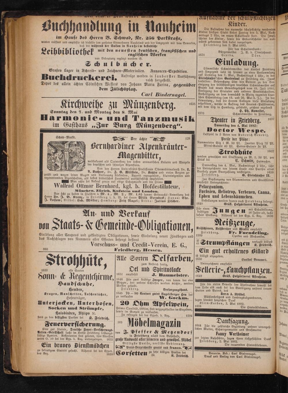Friedberg den 2. Mai 1882.